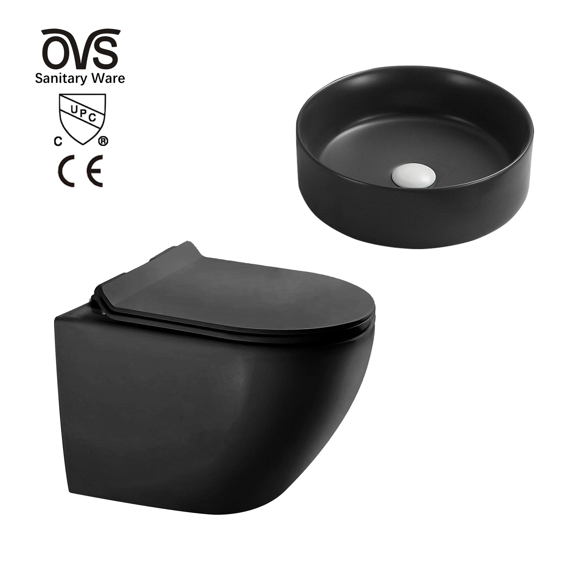 Rimless Ceramic Bathroom Wall Hung Toilet Set Back To Wall Toilet Bowl With Sink